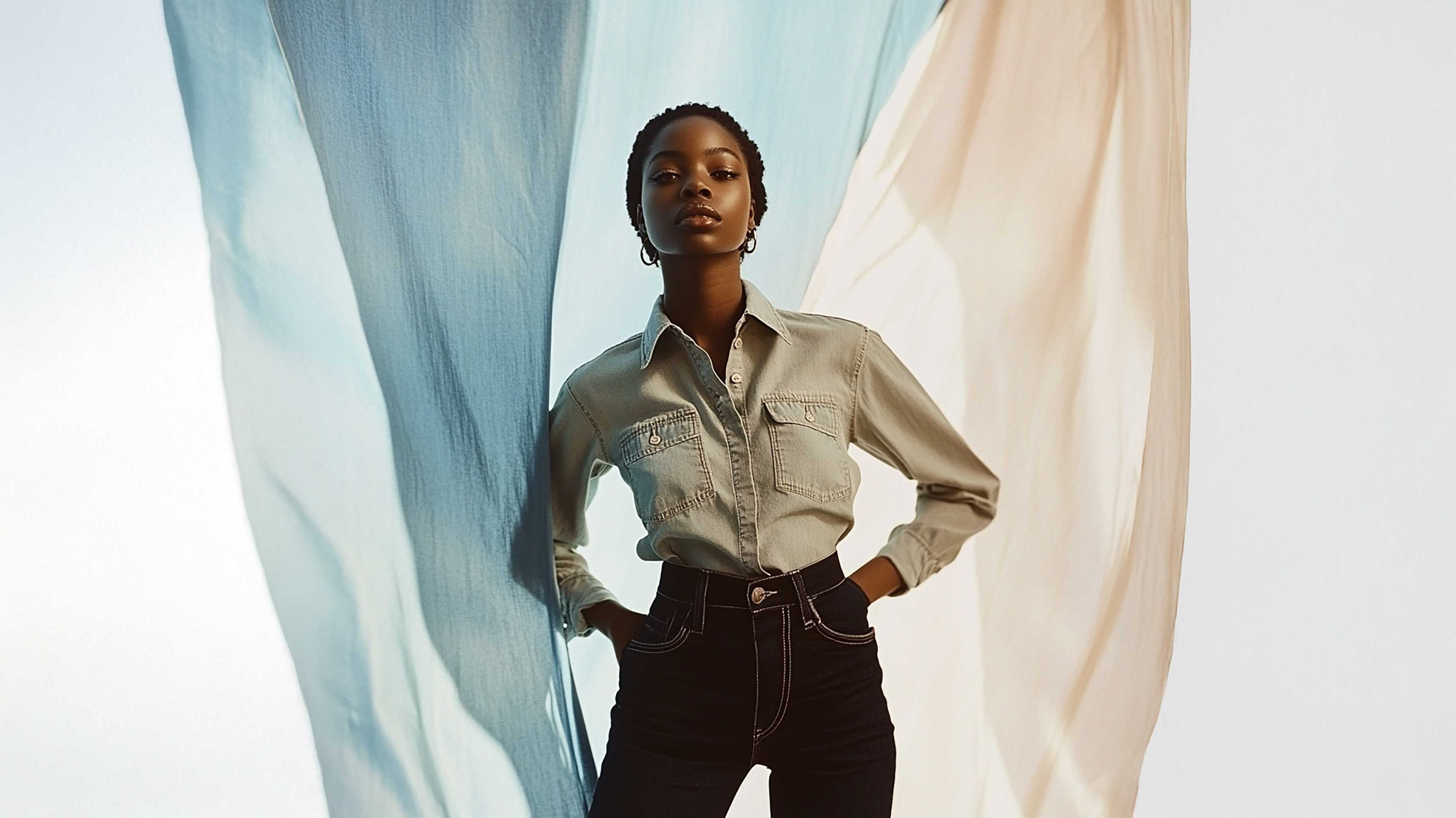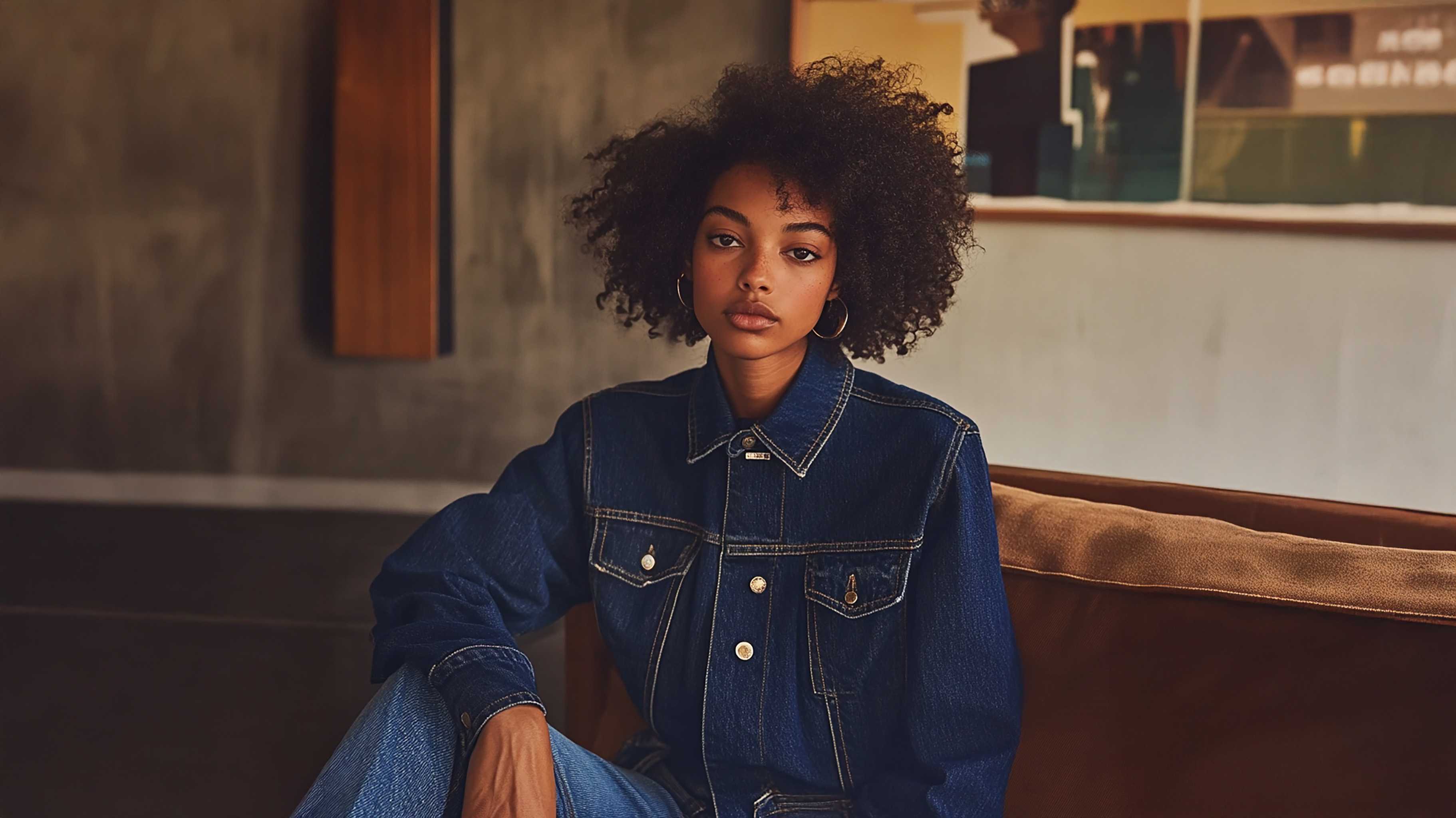 Dusk Blue Checkered Denim Wide Leg Jeans