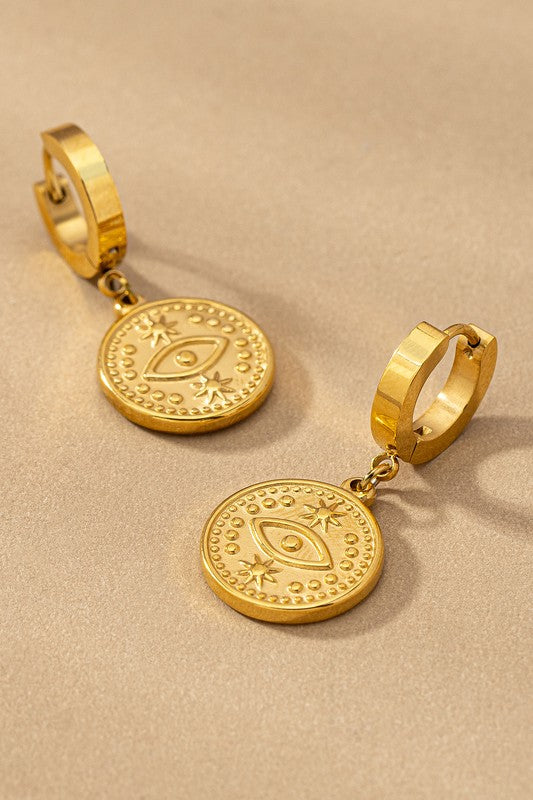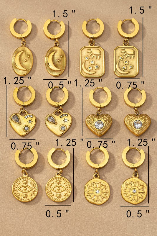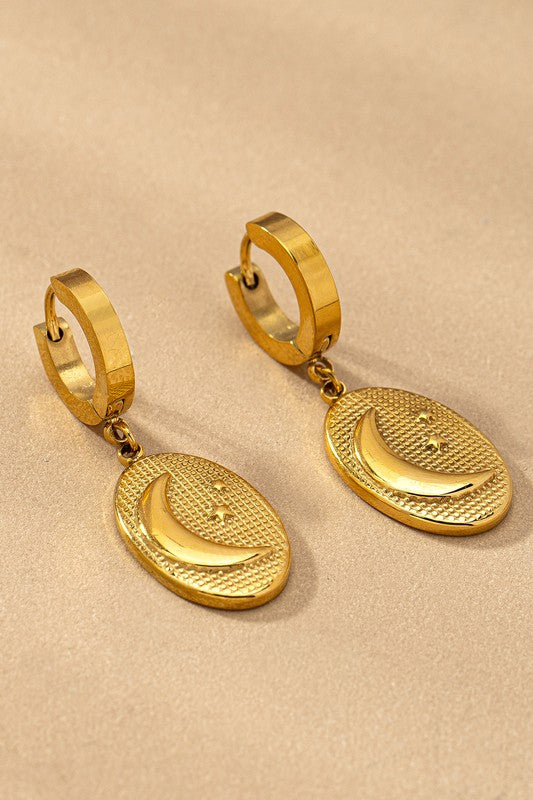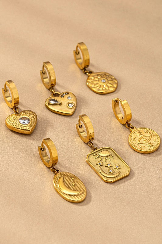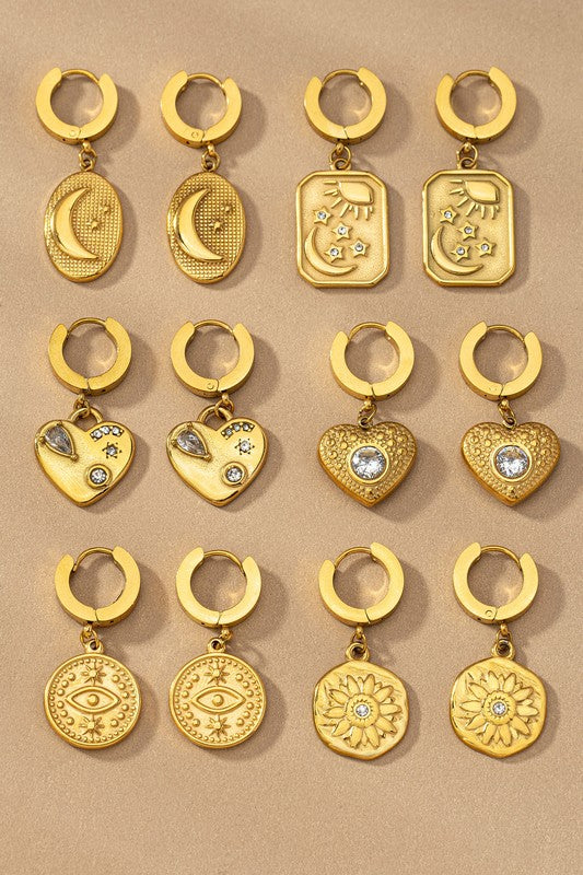 Water proof stainless steel huggie with charm drops