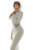 Long Sleeve Plain Maxi Dress With hoodie Casual Long Midi Club Party Dresses.