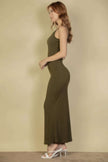 Enhance your wardrobe with our Ribbed Mermaid Hem Camisole Maxi Dress in Olive. Add this versatile and chic piece to your collection for effortless elegance!