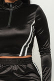 Elevate your casual wardrobe with our Casino Fabric Color Block Stripes Detail Two-Piece Set in black. Add it to your cart now and experience a new level of trendy comfort!